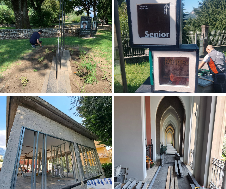 Lato Cantonieri di Comunità, si sono conclusi: il riordino del verde in via Al Cimitero, via della Castagna, scaletta di via Gorizia a San Giovanni, zona verde della Piccola, strada consorziale a fondo chiuso di via Bergamo a Chiuso, via Coltogno, scaletta verso via Paradiso e scale della chiesa superiore di Rancio, via Carale a Germanedo, piazzale della chiesa di Olate con nuova piantumazione di rose sul Monumento dei Caduti, aiuola sulla ciclabile verso Abbadia Lariana (zona Pradello), il contenimento dei rovi sulla via Igualada e la riparazione di alcune casette del bookcrossing.