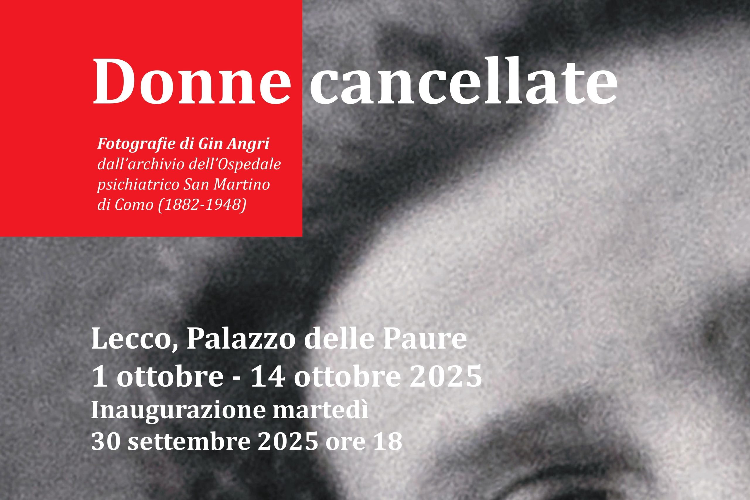 Martedì 30 settembre, alle ore 18 al Palazzo delle Paure, verrà inaugurata la mostra fotografica "Donne Cancellate", con scatti di Gin Angri tratti dall'archivio dell'ex ospedale psichiatrico San Martino di Como.