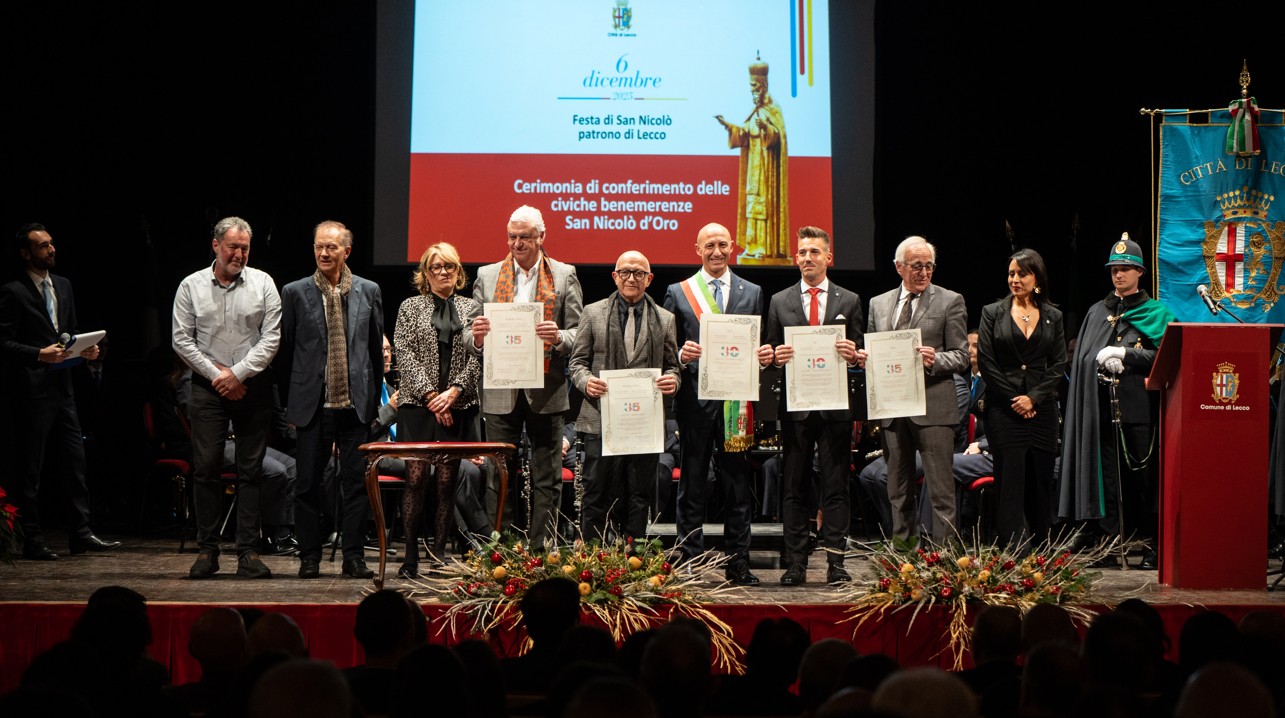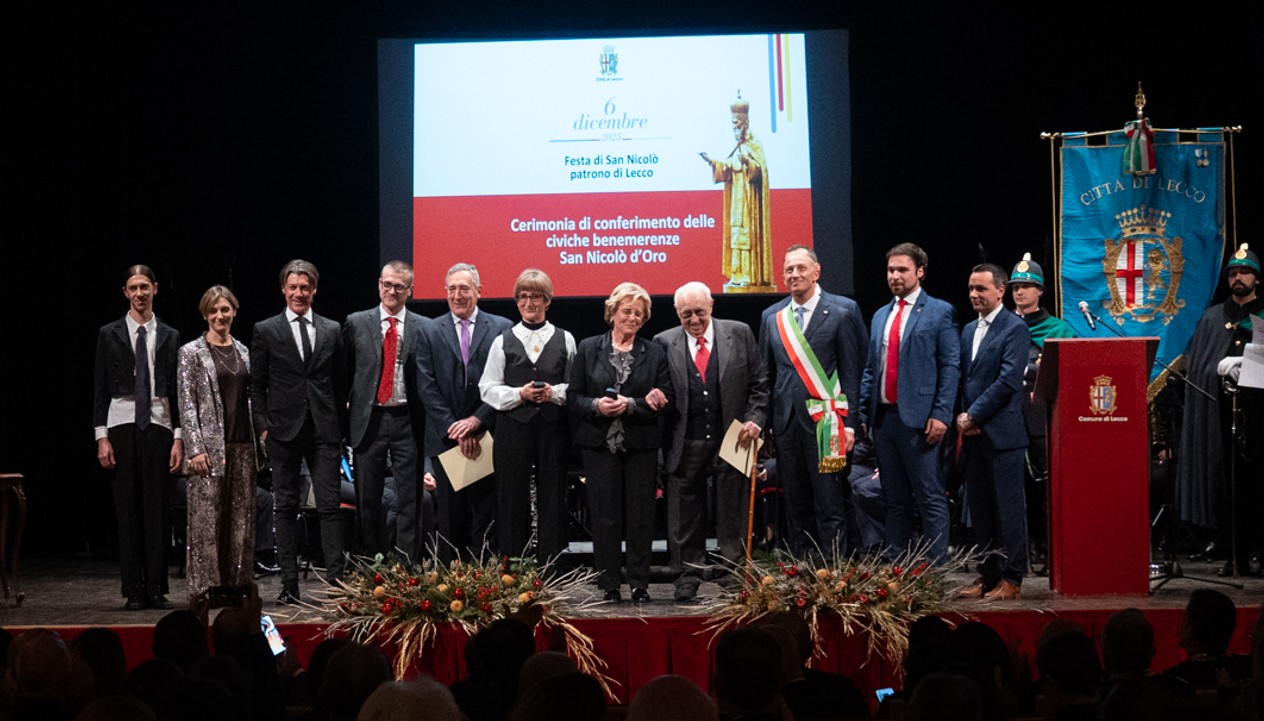 Si è svolta sabato 6 dicembre 2025 al rinnovato Teatro della Società di Lecco la cerimonia di Conferimento delle "Civiche Benemerenze - San Nicolò d'Oro" che la Città di Lecco, in occasione del suo Santo Patrono, assegna a cittadini ritenuti meritevoli di tale speciale riconoscimento.